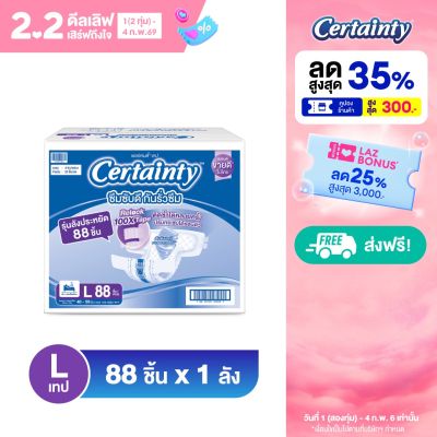 [สินค้าอยู่ระหว่างเปลี่ยนแปลงบรรจุภัณฑ์] ใหม่!!! Certainty Tape ผ้าอ้อมผู้ใหญ่ เซอร์เทนตี้ แบบเทป เทปล็อกซ้ำได้ 100 ครั้ง ราคาประหยัด ลัง Super Save ไซส์ L 88 ชิ้น