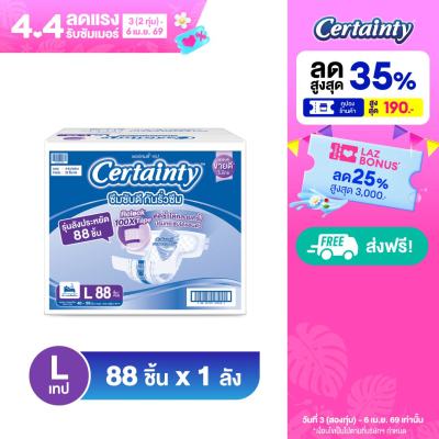 [สินค้าอยู่ระหว่างเปลี่ยนแปลงบรรจุภัณฑ์] ใหม่!!! Certainty Tape ผ้าอ้อมผู้ใหญ่ เซอร์เทนตี้ แบบเทป เทปล็อกซ้ำได้ 100 ครั้ง ราคาประหยัด ลัง Super Save ไซส์ L 88 ชิ้น