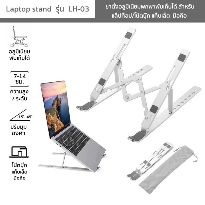 Laptop stand รุ่น LH-03 ขาตั้งแล็ปท็อป/โน้ตบุ๊ก แท็บเล็ต มือถือ อลูมิเนียมพับเก็บได้ ปรับความสูง 15°-40°
