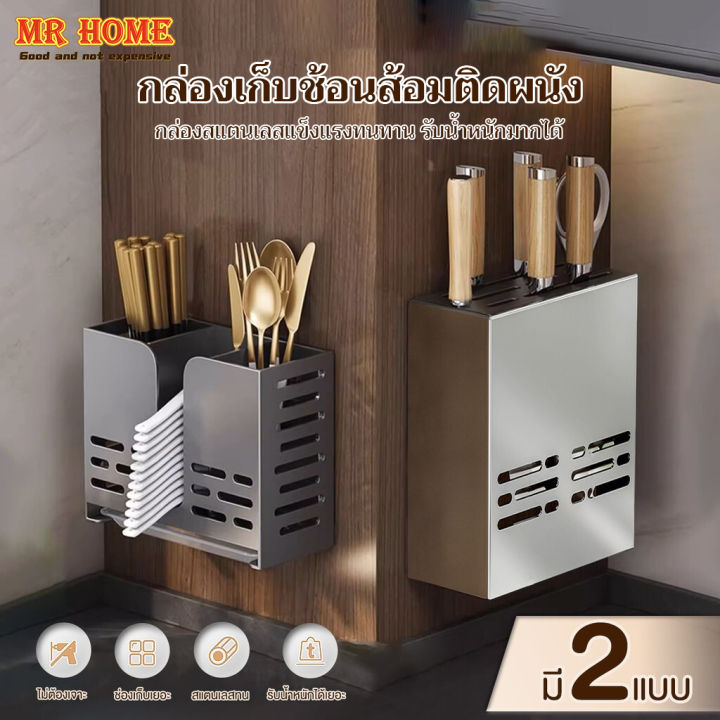 ที่ใส่ช้อนส้อม เก็บมีด ที่เก็บช้อนส้อม กล่องเก็บช้อนส้อมตะเกียบ ติดผนัง ไม่ต้องเจาะ สะดวกในการจัดวาง