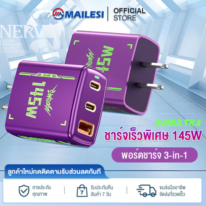 Mailesi หัวชาร์จเร็ว 145W เครื่องชาร์จ 3 ports 145W GaN QC+PD การชาร์จเร็วแบบหลายโปรโตคอล ใช้ได้กับ Type-C ทุกรุ่น